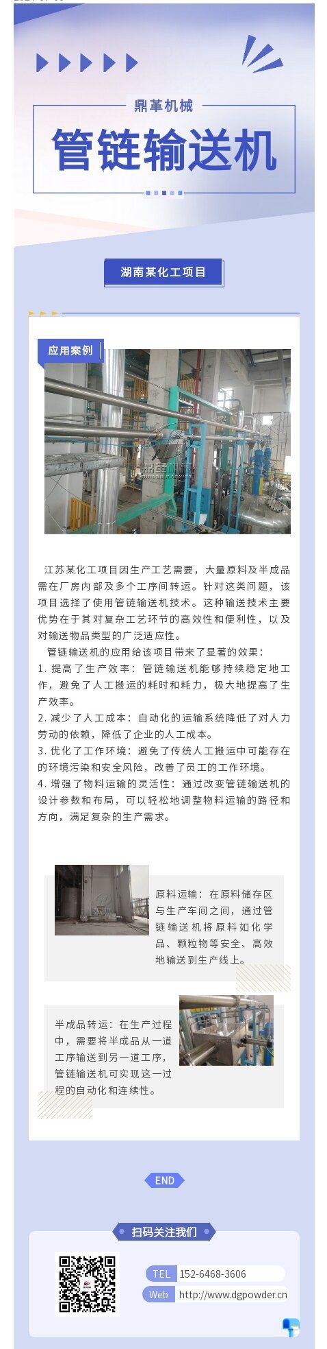 管鏈輸送機在化工行業(yè)的應用與優(yōu)勢
